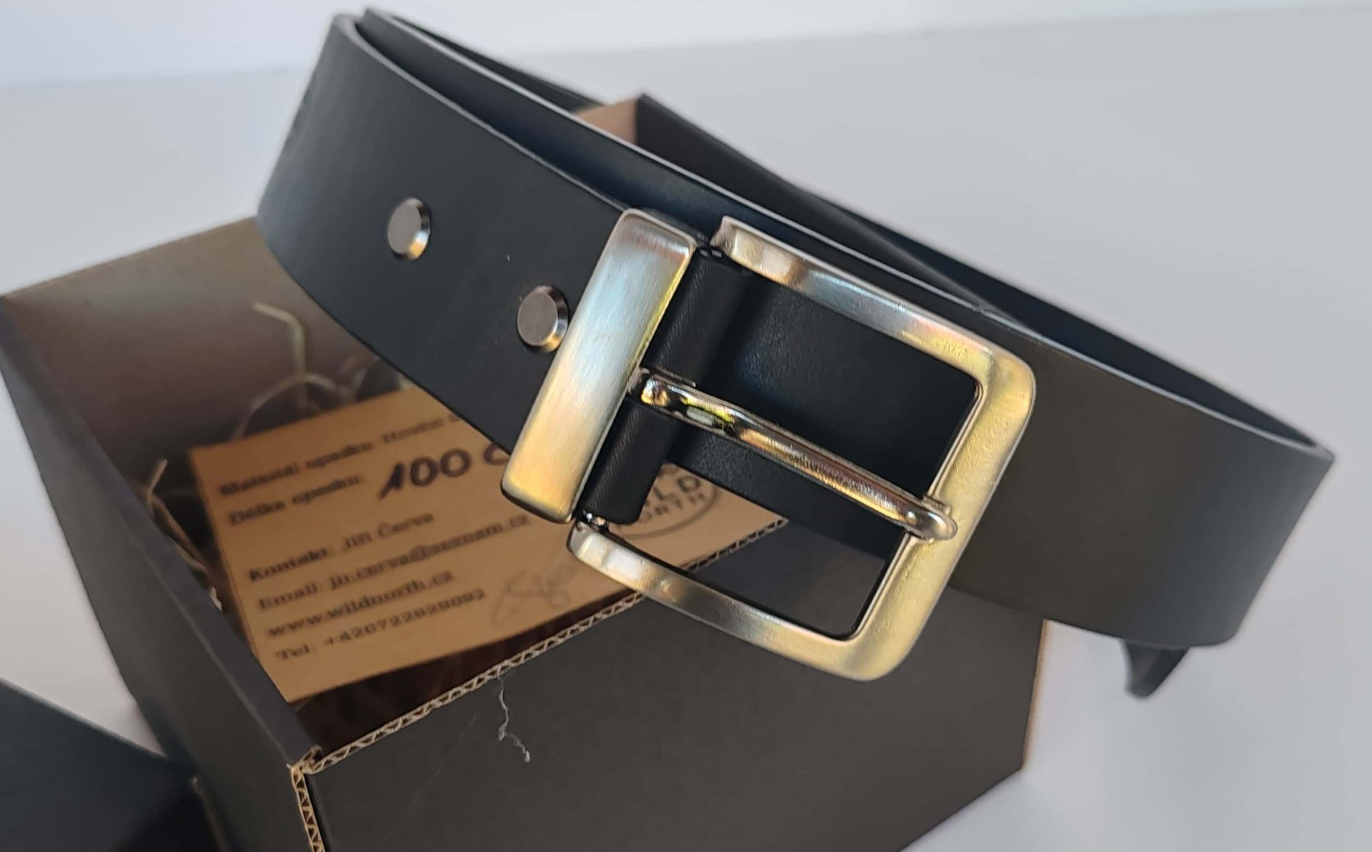Kvalitní kožený pásek v černé barvě.