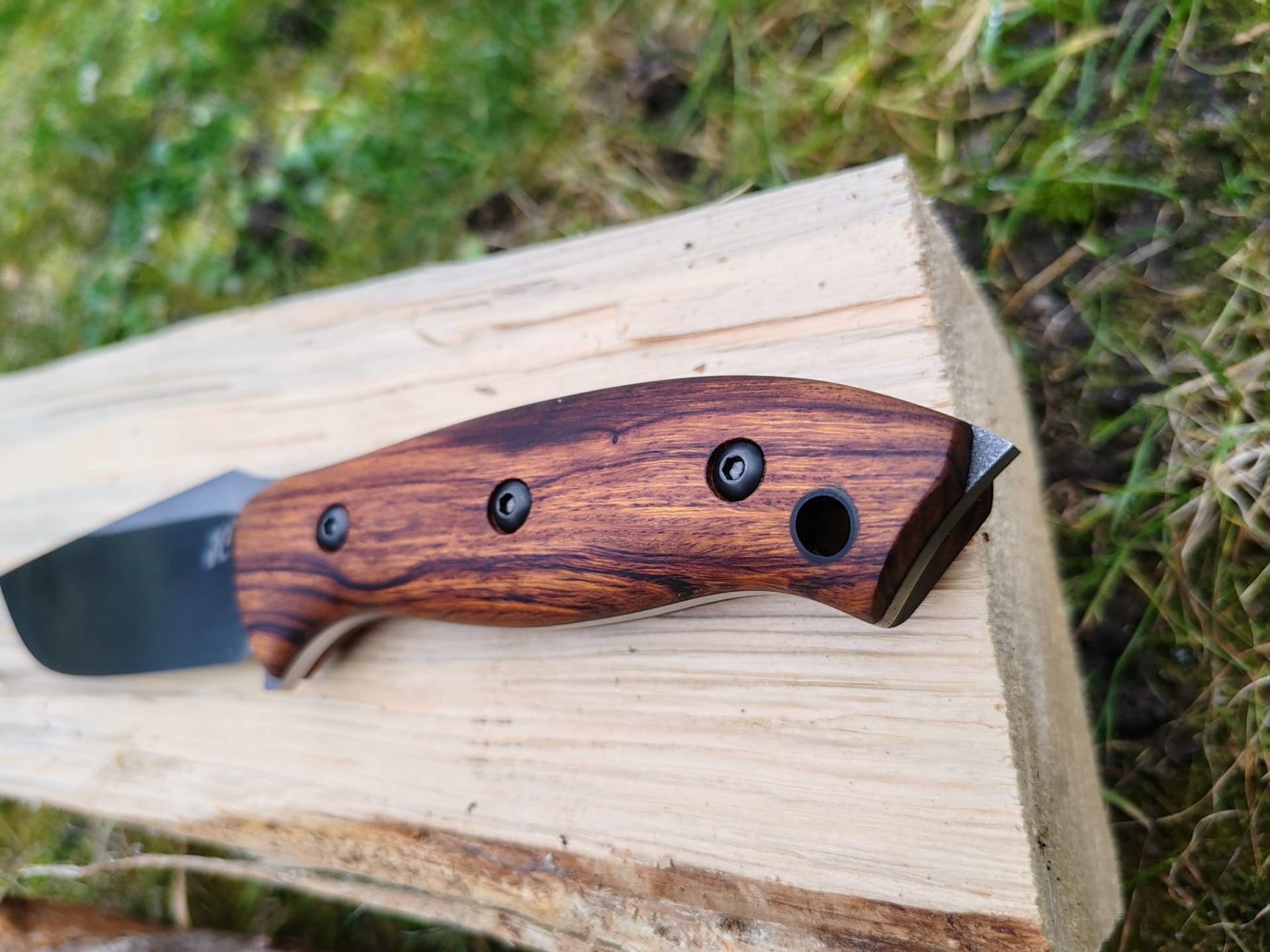 Rukojeť velice tvrdé dřevo z arizony Ironwood podlepená černou G10