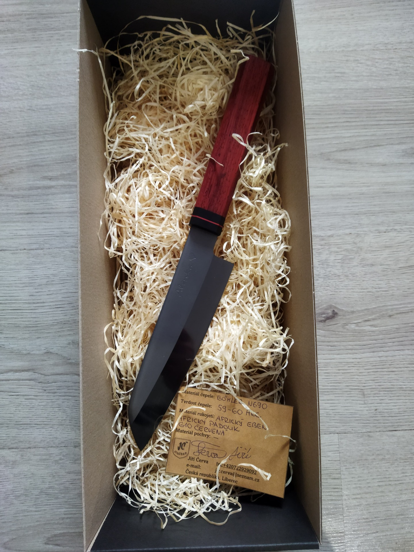 Velmi kvalitní kuchyňské nože. Individuální úprava rukojeti a pouzdra.